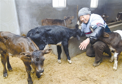 1月29日,在辽宁省锦州市太和区新民乡宋家沟村奶牛专业生产合作社的“托牛所”,工作人员照料牛犊。