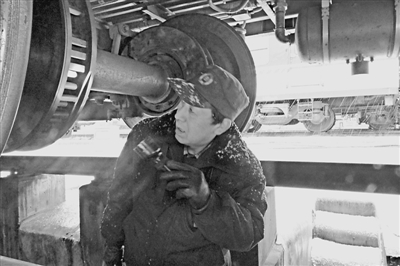 1月28日,兰州车辆段职工在雪中检修作业。当日,兰州迎来降雪,该段职工以雪为令,克服下雪天整备场路滑、作业不便等困难,严守标准,精检细修,确保客车出库质量。强科 吴剑 摄