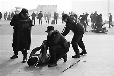 太原铁路公安在太原火车南站举行反恐防暴实战演练,春运期间为旅客安全出行提供了良好的治安环境。