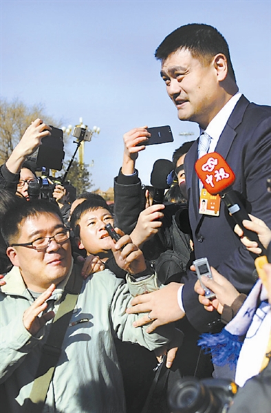 3月3日下午,全国政协十二届三次会议在北京人民大会堂开幕。委员们步入会场时,姚明委员被记者“围追”谈体育改革。