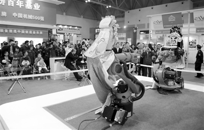 在第十三届中国金属冶金展中,新奇的机器人演出的京剧《三岔口》折子戏博人眼球。