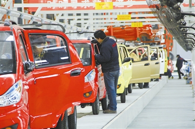 春节前夕,河南省内黄县永青车业电动车迎来生产销售高峰,工人们加班加点忙生产,供应春节市场。刘肖坤 摄/CFP