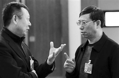 3月4日,工会界别分组讨论结束后,任克雷委员(左)和何喜奎委员对我国工业设计产业发展的话题意犹未尽。任克雷说,目前我国工业领域自主创新能力薄弱,设计水平仍较低,产业价值链层级有待进一步提升。“应着力培育专业高端人才和具有国际竞争力的大型工业设计企业”。
