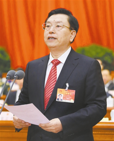 大会主席团常务主席、执行主席张德江主持大会。大会主席团常务主席、执行主席李建国、王胜俊、陈昌智、严隽琪、王晨、沈跃跃、吉炳轩、张平、向巴平措、艾力更·依明巴海、万鄂湘、张宝文、陈竺在主席台执行主席席就座。