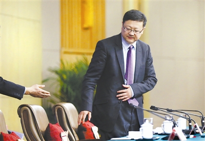 3月7日下午,在十二届全国人大三次会议举行的新闻发布会上,主持人示意环保部部长陈吉宁落座。对于履新环保部刚刚1个多月的陈吉宁来说,这个位子有点“烫”。环境污染是当下民众最关心的问题之一,如何寻求新突破,对于陈吉宁来说是个不小的挑战。发布会上,陈吉宁就共同治霾、清理“红顶中介”、治理土壤污染、落实新环保法等一系列热点问题坦诚作答。
