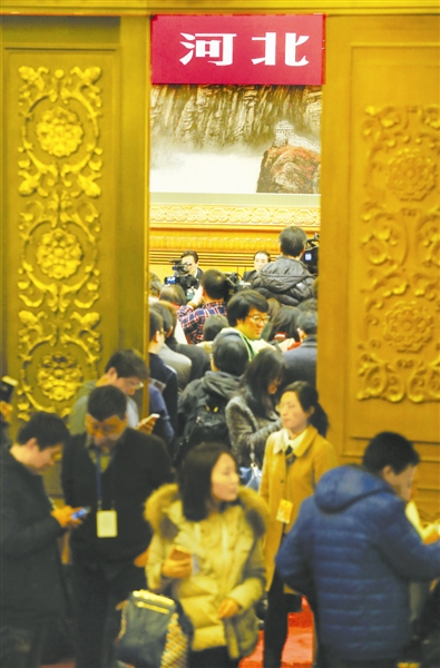 3月9日下午,参加十二届全国人大三次会议的河北代表团,在北京人民大会堂举行团组开放活动。今年两会期间,河北代表团成为媒体关注的热点,经济结构调整、大气污染治理、京津冀协同发展等话题一再被提及。