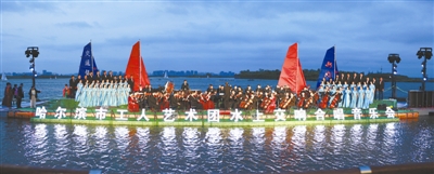 2014年7月25日、26日两天的夜晚,夜幕下的哈尔滨市一湖三岛工会帆船赛艇基地歌声阵阵、掌声不断,由哈尔滨市总工会主办的第二届水上交响合唱音乐会在这里举行。来自全市各大企事业单位的职工演员在水天一色中唱出了最动听的音符。