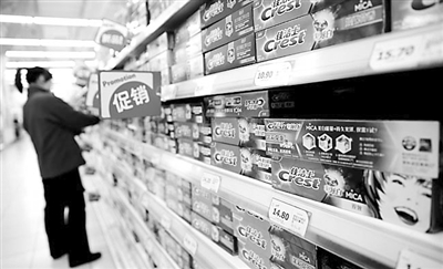 上海市工商局3月9日披露,因构成虚假广告,佳洁士双效炫白牙膏被处罚603万元,这是国内目前针对虚假违法广告的最大罚单。图为3月10日,在上海某超市牙膏柜台,佳洁士双效炫白牙膏依旧摆放在显眼的位置。中新社发 汤彦俊 摄
