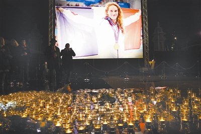 当地时间2015年3月10日,法国尼斯,民众悼念25岁法国奥运会冠军卡米尔·穆法特。东方IC供图