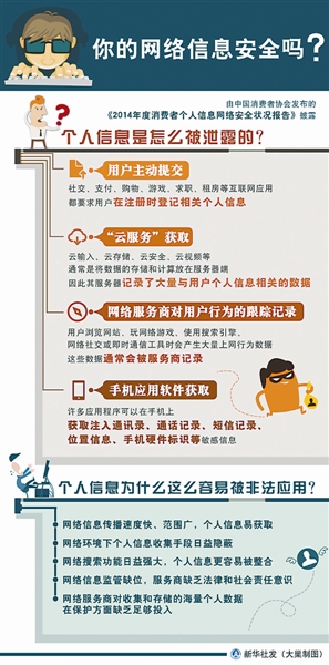 “2014年的各种重大网络安全事件显示,网络针对消费者个人信息‘窃取’、‘非法使用’的黑色产业链呈现出低成本、高技术、高回报的爆发性增长态势,已经从半公开化的纯攻击模式转化为敛财工具和商业竞争手段,消费者因个人信息泄露导致的经济损失数目惊人。” 中消协副秘书长刘敏表示。