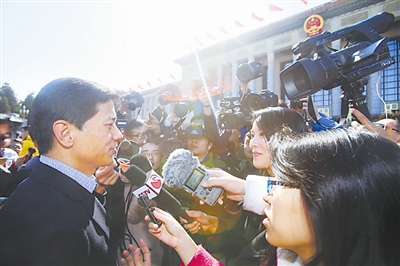 3月13日下午,全国政协委员、百度创始人李彦宏在谈到青年创业时说:现在的青年一代是互联网的原住民,希望所有的青年创业者胸怀大志,认准目标,不跟风、不动摇,早日实现自己的创业梦想。本报记者 杨登峰 摄