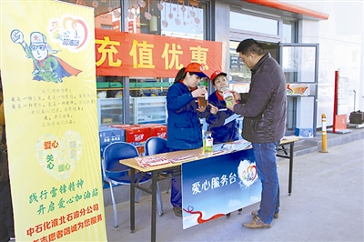 为普及油品知识,倡导绿色消费,中国石化安徽淮北石油分公司近日开展了“油品知识进万家”质量宣传活动。他们在加油站设立“爱心服务台”,免费向车主普及油品使用和车辆保养知识……图为加油站员工向车主介绍如何鉴别油品的优劣。