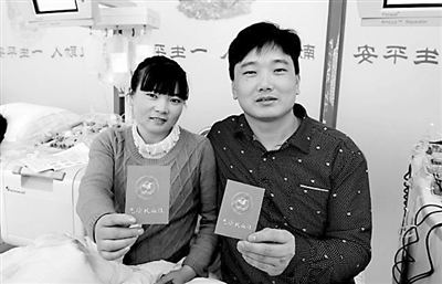 3月16日,合肥市中心血站,周坤和妻子石岩在献血后展示自己的献血证书。3月16日,安徽省合肥市,周坤和妻子石岩走进合肥市中心血站,捐献单采血小板。这是他们自2011年来到合肥后献血的第58次和第33次。5年来,夫妻俩累计献血近1.9万毫升。