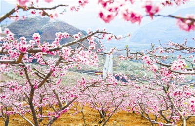 在汉源县九襄镇后山村,产业环线旁边桃花盛开(3月19日摄)。