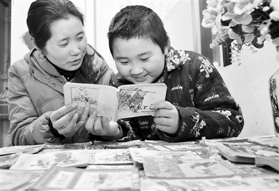 图为:赵影正在与小朋友一起阅读小人书。王道玉 摄
