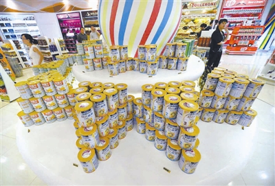 3月20日,顾客在海南三亚海棠湾免税购物中心选购奶粉。