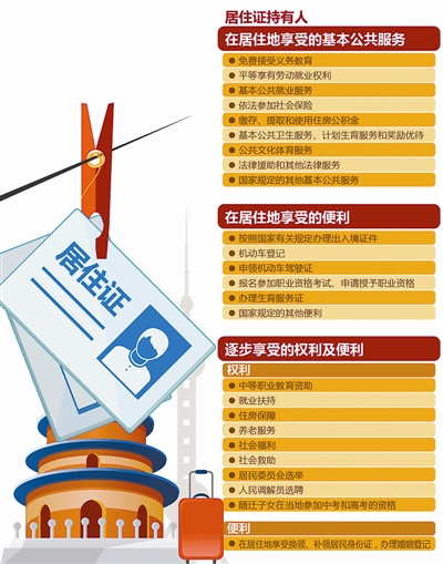 居住证真的与外来务工者的生活关联甚小吗?记者了解到,根据《成都市居住管理条例》,目前在蓉外来流动人口可办理1年有效期的临时居住证和5年有效期居住证。办理临时居住证后,持证人可享受相关计生卫生服务、法律服务和法律援助、机动车驾驶和注册登记、参加居住地社会事务、社会保险、子女入学等权益和服务;办理5年居住证后,除上述条款,持证人还可享受职业资格评定或考试、参加科技创新并获取资助、按规定申转常住户口和子女就近入学等待遇。