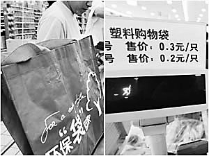 长春市某大型超市的工作人员说,因为价格高,老年消费者几乎都是自带塑料袋或布袋,只有年轻人才会随机购买超市的可降解塑料购物袋。