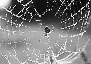 靠着结网猎食的蜘蛛,在找到适合的栖息地之后,就会依照环境和自己的能力开始结网。结出网后,它们就耐心地等待猎物爬上来,成为腹中之物。在猎食与成长的过程里,蜘蛛必须不断地修补或重新结网。