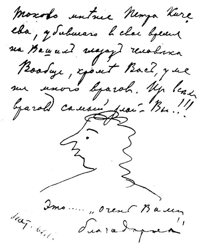 为了能够不知不觉地出现在梅里霍沃庄园,坐在您的沙发上,和您聊上十分钟,与您共进午餐,以至于觉得整个这一年像是什么也没有发生过,我好像从来没有离开过俄罗斯,好像一切还是原来那个样子,如果能够这样,我愿意牺牲我一半的生命!