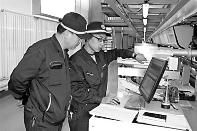 3月27日,动车机械师对动车组空心车轴进行超声波探伤。兰新高铁即将百天,为确保“清明小长假”动车运行安全,兰州车辆段兰西动车运用所干部职工严格执行动车组检修作业标准,全面提高动车组春整质量。
