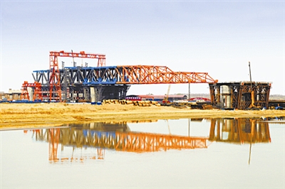 日前,由中铁四局集团承建的石(家庄)济(南)铁路客运专线重点控制性工程——齐济黄河公铁两用桥首孔重达776.8吨简支箱梁顺利架设。同日,主桥钢桁梁首节悬索加劲弦也顺利拼装。
