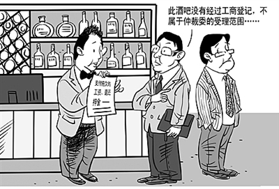 随后吴某在福建省龙岩市职工服务中心帮助下,向新罗区劳动争议仲裁委员会申请仲裁,但仲裁委认为:“吴某申请仲裁的酒吧没有经过工商登记,不属于仲裁委的受理范围。”吴某不服,向新罗区法院起诉,最后法院判决:被告应于本判决生效之日起10日内支付原告工资5073元、押金4000元、赔偿金9961.34元、未签订劳动合同的另一倍工资26264.35元。