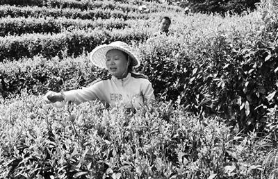 4月7日,贵州雷山县茶农在望丰乡乌江村保盖延茶场抢摘春茶。