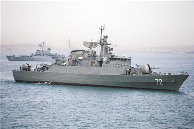 当地时间2015年4月7日,伊朗阿巴斯港,美国加紧对沙特等国的武器支援,伊朗派遣一艘海军驱逐舰与一艘供应船赴也门海域,应对沙特空袭。 东方IC供图