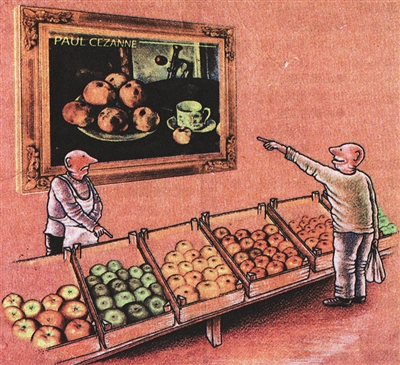 墙上挂的和柜内摆的苹果根本不是一码事。执拗的顾客偏偏看上了静物画作,即或它是广告宣传品,也属于非卖品,无奈。【土耳其】阿斯肯