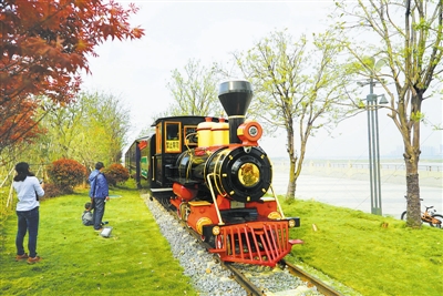 4月12日,小火车行驶在凤凰洲市民公园内。