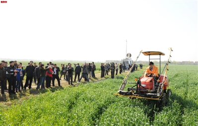 当日,由农业部种植业管理司全国农业技术推广服务中心主办的“小麦穗期重大病虫害防控现场会”在湖北省襄阳市召开,9家大型现代植保机械生产企业在现场会上进行了现代植保机械演示。目前国内较先进的自走式喷雾机、高地隙水旱两用喷杆喷雾机、自走式喷杆喷雾机、各种不同型号的植保无人机等纷纷亮相。