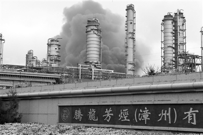2015年4月7日下午,福建漳州,腾龙芳烃(漳州)有限公司着火罐体已基本被扑灭,火势已得到有效控制,现场依旧浓烟滚滚。东方IC