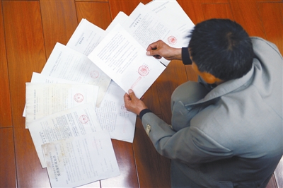 4月15日,何正文在接受记者采访时,展示了他近四年来收到的七份法律文书。本报记者 吴凡 摄