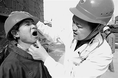 “你的血压非常高,去做个心电图,赶紧休息治疗。”4月13日,新疆库尔勒市二十九团建筑工地几名医生给农民工进行免费体检。当日,300多名农民工享受了健康检查。