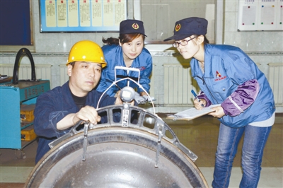 乌鲁木齐铁路局乌西车辆段党委通过集中培训、岗位锻炼和业务比赛选拔等多种培养形式,努力打造一批高知识、高素质、高技能的新型大学生职工队伍,不断适应铁路车辆维修发展的需要。图为工长慕文杰正在手把手地给大学生职工们进行轮对检测。