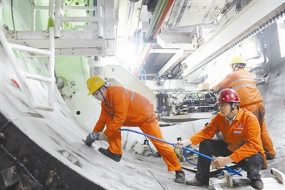 4月16日,中铁隧道集团位于青岛地铁2号线一标段施工工区,我国首次将TBM施工技术用于地铁建设。赵 晶 摄