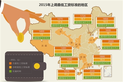 据悉,目前全国已经有11个地区上调了2015年最低工资标准,分别是深圳、上海、广东、天津、北京、山东、陕西、甘肃、西藏、湖南、海南,仍有20多个省份尚未调整最低工资标准,其中更有省份违规两年没有上涨最低工资。