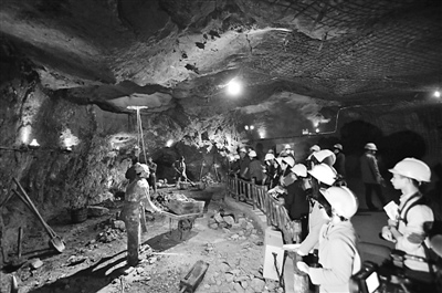 4月21日,游客在桂阳宝山国家矿山公园采风游览。湖南省桂阳县古有“楚南名区,汉初古郡”之称,是“有色金属之乡”,宝山早在汉代就是炼银冶铸的地方。“五一”节将近,该县独特的工矿旅游项目吸引着省内外游客纷至沓来。贺茂峰 摄/东方IC