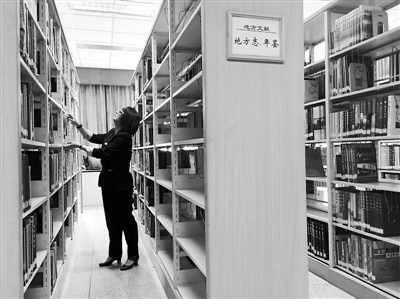 “我们这里资料可是很全的,连很小的地方的村志和校志都有。”她自豪地说。