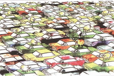 草原忽然被开发成旅游区,滚滚车流如潮水涌来。喧闹扰乱了人们的生活,羊倌只得在“车海”中放牧,这个创举亦成一道风景。【罗马尼亚】帕维尔