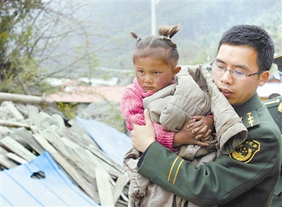 4月25日,吉隆县边防大队派出所官兵在吉隆县吉隆镇帮助当地群众转移。新华社发