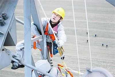 语录:“站在百米高空检修电网时,可以听到轻柔的风,那是自然的声音,平静而舒畅。”