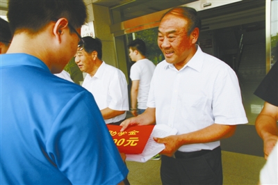 三门峡市人大常委会副主任、总工会主席孙宗会向困难职工子女发放助学金