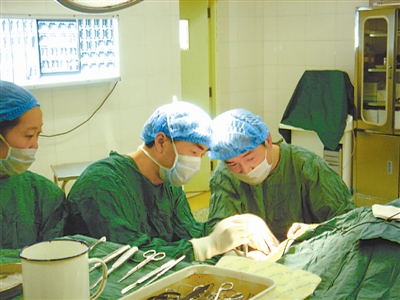 孙晓阳(中)正在为神经外科患者做手术