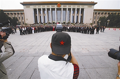 在人民大会堂东门外合影。