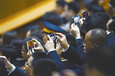 用手机记录下颁奖大典。