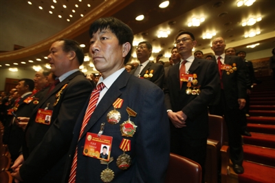佩戴奖章的全国劳动模范和全国先进工作者们群星闪耀。