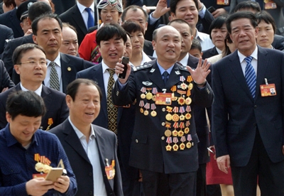 江西团全国劳模特邀代表陈勇琦,满身的奖章引人注目。