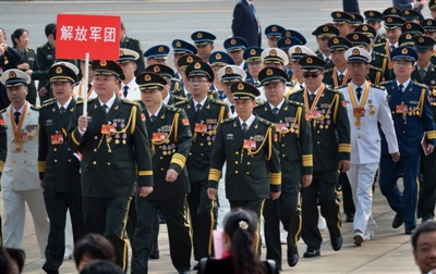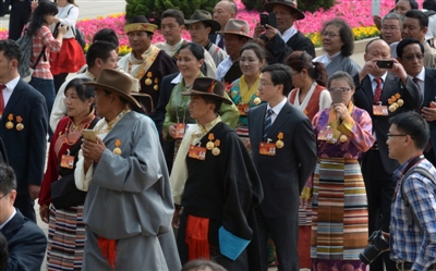 西藏团的受表彰者步入人民大会堂会场。